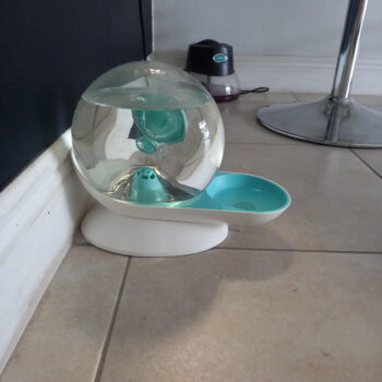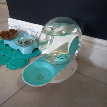 Absolutely delighted with this purchase! The modern design in the lovely pastel color fits perfectly with our home decor. More importantly, our cat loves the constantly fresh water. Easy to set up and very quiet operation.