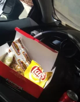 I love this tray! Where I work, days can get hectic to the point where I simply refuse to eat my lunch inside so I go to my car (mental breakaway). I have a sliding armrest/console but it got annoying trying to cut up my hibachi-style teriyaki chicken from Tokyo Grill on it. I did an internet search and found this! No regrets! Note: if you have a steering wheel cover on, this won’t work. Bright side: it’s easy to put on your steering wheel and yes you will doubt yourself and think you can’t apply pressure or you’ll drop your food and drink in your lap, lol. This tray is sturdy enough to cut up food on it! Now, I have to be honest, I only used the “cup holder/placement” feature once.......I prefer the security of my cup holders in my car (‘17 Honda Civic). So where the cup I supposed to go, I put my phone there to watch YouTube while I eat my lunch (propped up by a popsocket). It works perfectly! Oh, and if you put this on your steering wheel and it’s at an angle, just take it off and try again. It’ll happen when you’re trying to put it on in a rush or just aren’t paying attention. :)