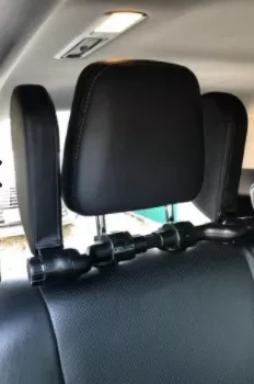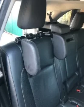 This thing is great!! I finally pulled the trigger and bought one for my 6 yr old and 10 yr old to use on a car trip we're taking this weekend. I have a Ford Explorer, 3 kids in the second row, 1 cart seat. My 6 yr old and 10 yr old are going to use this between them and then the carseat is on the other side to use as a headrest. They also have those neck pillows, but they don't like to use them for some reason. I'm so glad I finally got this. It looks really nice, very easy to move into any position and fits snug and tight on the headrest. My husband tried it out last night and approves as well.