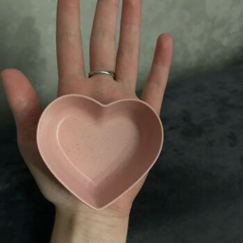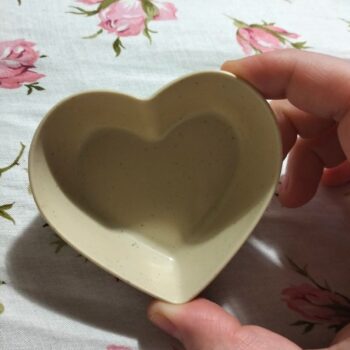 These heart-shaped sauce dishes doubled as charming trinket trays. I customized them with vinyl to propose to my bridesmaids, and they were a hit.