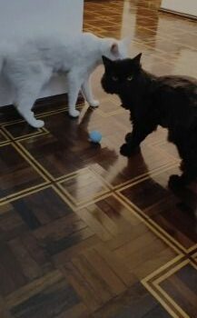 Our two cats love this ball! We turn it on whenever they start to fight, and it stops them right away! They were initially scared of it, so we left it out without turning it on for about a week and sprayed a bit of catnip spray on it to get them interested. After that, they loved it!
