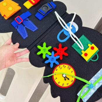This early education toy has been a game-changer in our household! Made of high-quality felt with smooth edges, it provides peace of mind knowing that our toddler can safely explore all the interactive activities on offer. From tying shoelaces to using various clothing buttons, every element serves as an opportunity to enhance memory, hand-eye coordination and problem-solving skills. Plus, its portability allows us to bring learning everywhere we go – be it long road trips or flights.