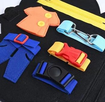 This toy is fantastic in helping children develop fine motor skills and cognitive abilities while having fun at the same time! My two-year-old loves playing with different parts like belts or school bag buttons; even his speech has improved since he started using this tool regularly because he needs to communicate what part he wants help with next!