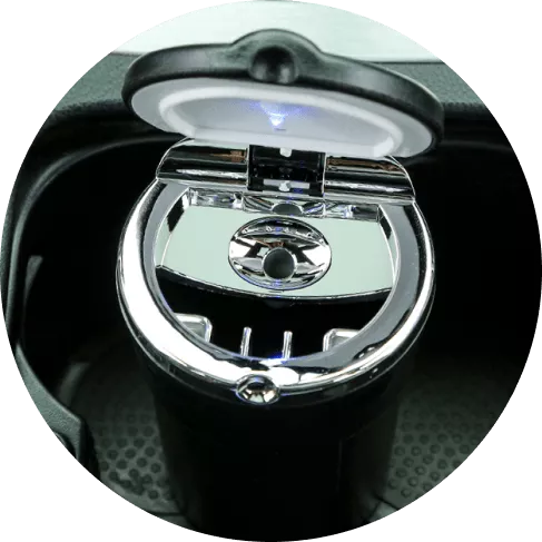 Smoking on a night drive? Our built-in blue LED light illuminates the way to proper disposal.