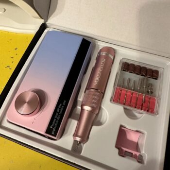 This rechargeable nail drill machine is amazing. it’s very easy to use and perfect for at-home manicures. the drill is powerful and has multiple speed settings for precise control. the rechargeable battery lasts a long time and makes the drill very portable. the attachments are great and cover all my nail needs. the drill is quiet and doesn’t get hot, even with prolonged use. my nails look professionally done every time. it’s a fantastic tool that saves me time and money. i’m very happy with this purchase and highly recommend it to anyone who loves doing their nails.